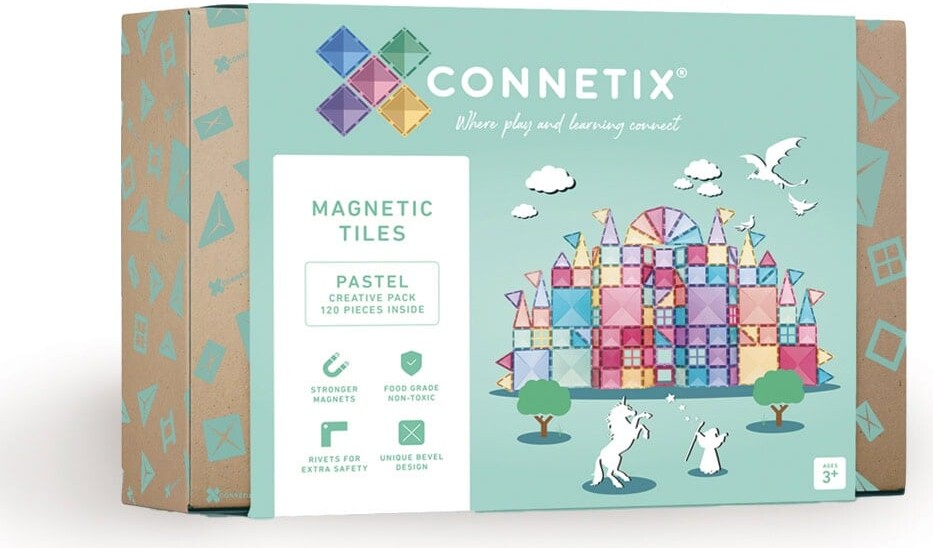 Oplev en verden af kreativitet og læring med Connetix Creative Pack. Dette magnetsæt med 120 dele i smukke pastelnuancer er designet til at inspirere både børn og voksne til at skabe fantastiske konstruktioner.