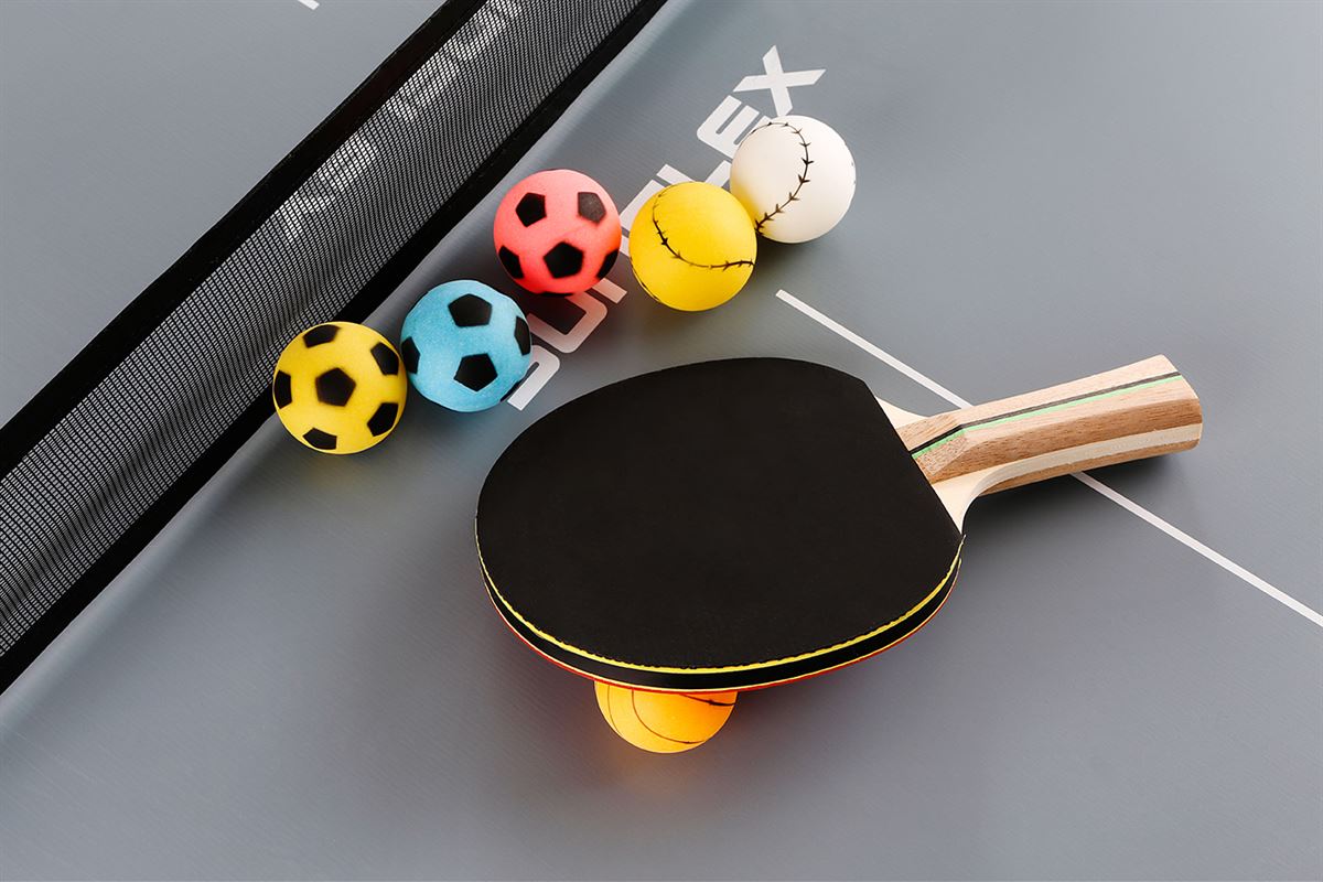 • 6 bordtennisbolde i forskellige sportsmotiver