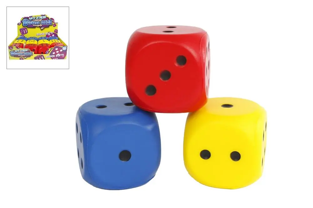 Disse terninger er superbløde og så skønne at klemme på. De måler 6 cm og fås i 3 farver.