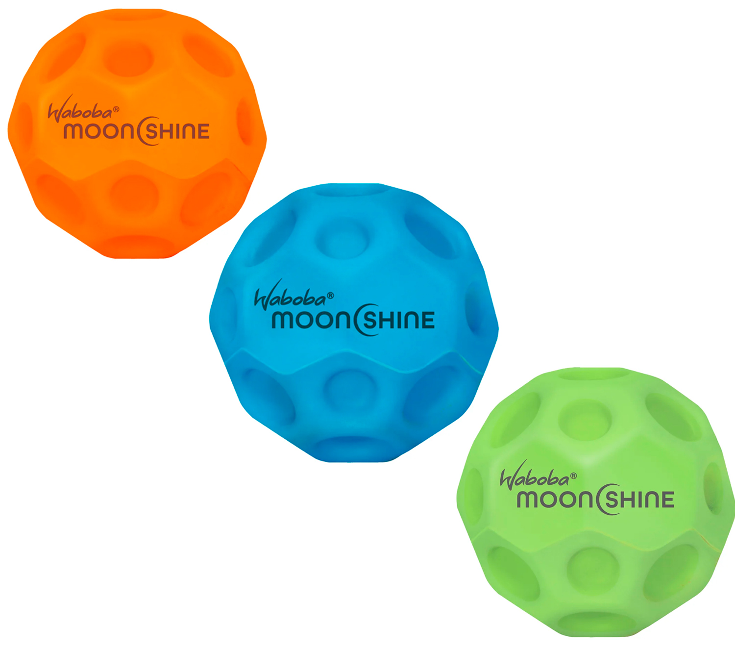 Ny og forbedret Moonshine 2.0! Lys natten op med tre nye Moonshine-farver: blå, orange og grøn. Lysende månebold Forbedret lys og batterilevetid Tilstoppet hul beskytter mod vand/fugt Bounce for at aktivere lyset Hyper-hoppende bold Diameter: 2,36 cm Ikk