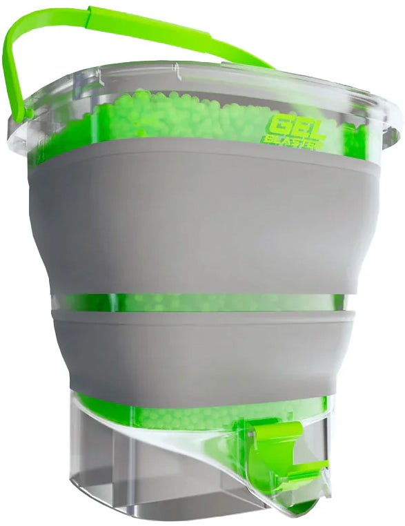 Gallet depot fra Gel Blaster med stor plads til ekstra skud. Perfekt til hurtig påfyldning! - Rummer 10.000 gellets! - Har både låg og håndtag. - Indbygget filterfunktion, der filtrerer overskydende vand væk. - Sammenklappelig og let at opbevare. - Mål: H 20 x B 27 cm. - CE-mærket. - Anbefalet alder: Fra 6 år.