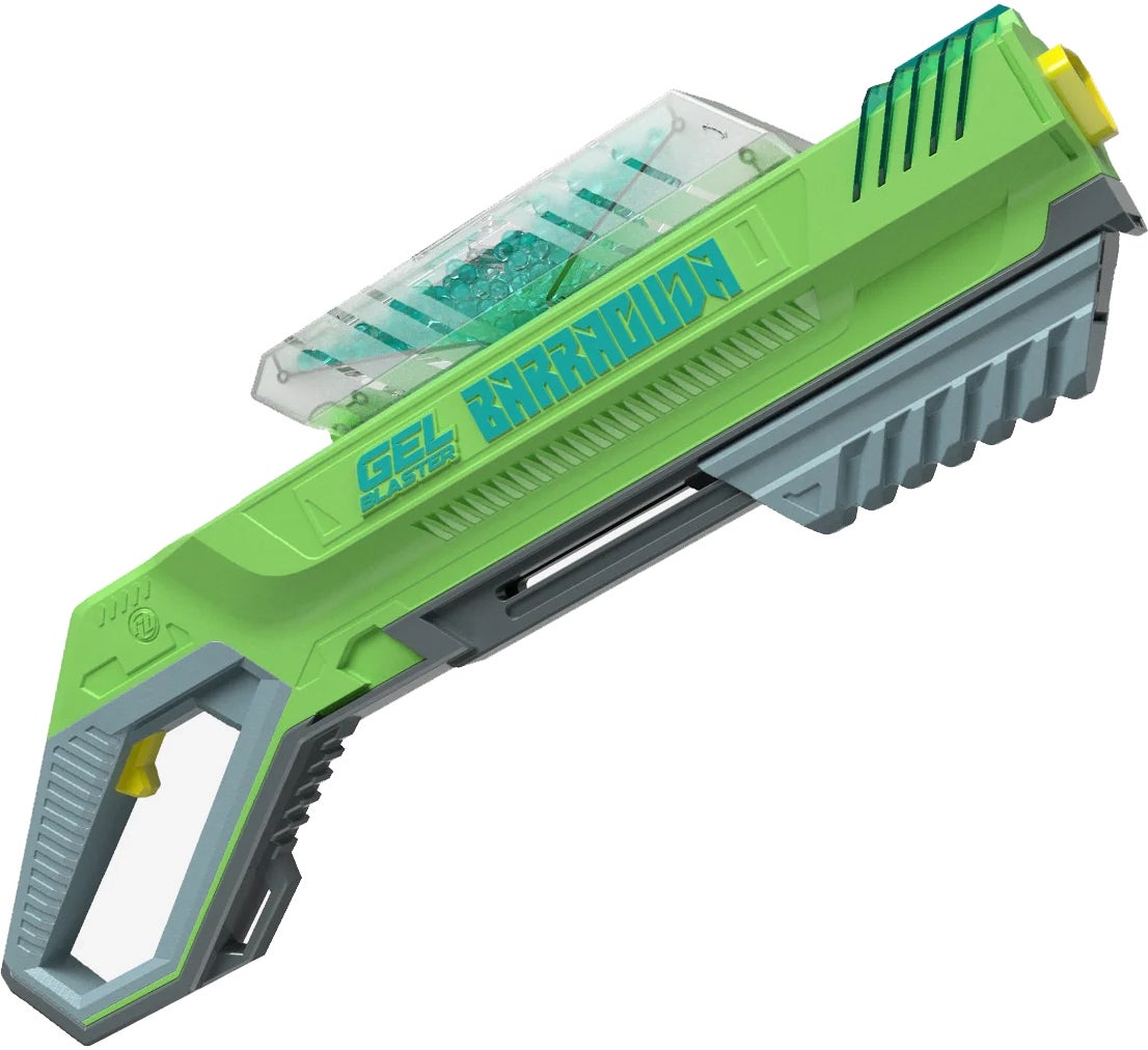 Barracuda blaster fra Gel Blaster med spændende tilbehør. Perfekt til mange timers sjov. - Indeholder: 10000 gellets, 1 beskyttelsesbriller. - Skyder 6 gellets ad gangen. - Rummer 600 gellets. - Pumpemekanisme. - Mål: H 30 x L 59 cm. - CE-mærket. - Anbefalet alder: Fra 14 år.