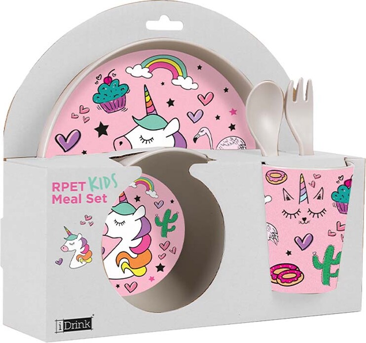 I-drink - Rpet Børnesæt Med Kop, Skål, Tallerken Og Bestik - Unicorn