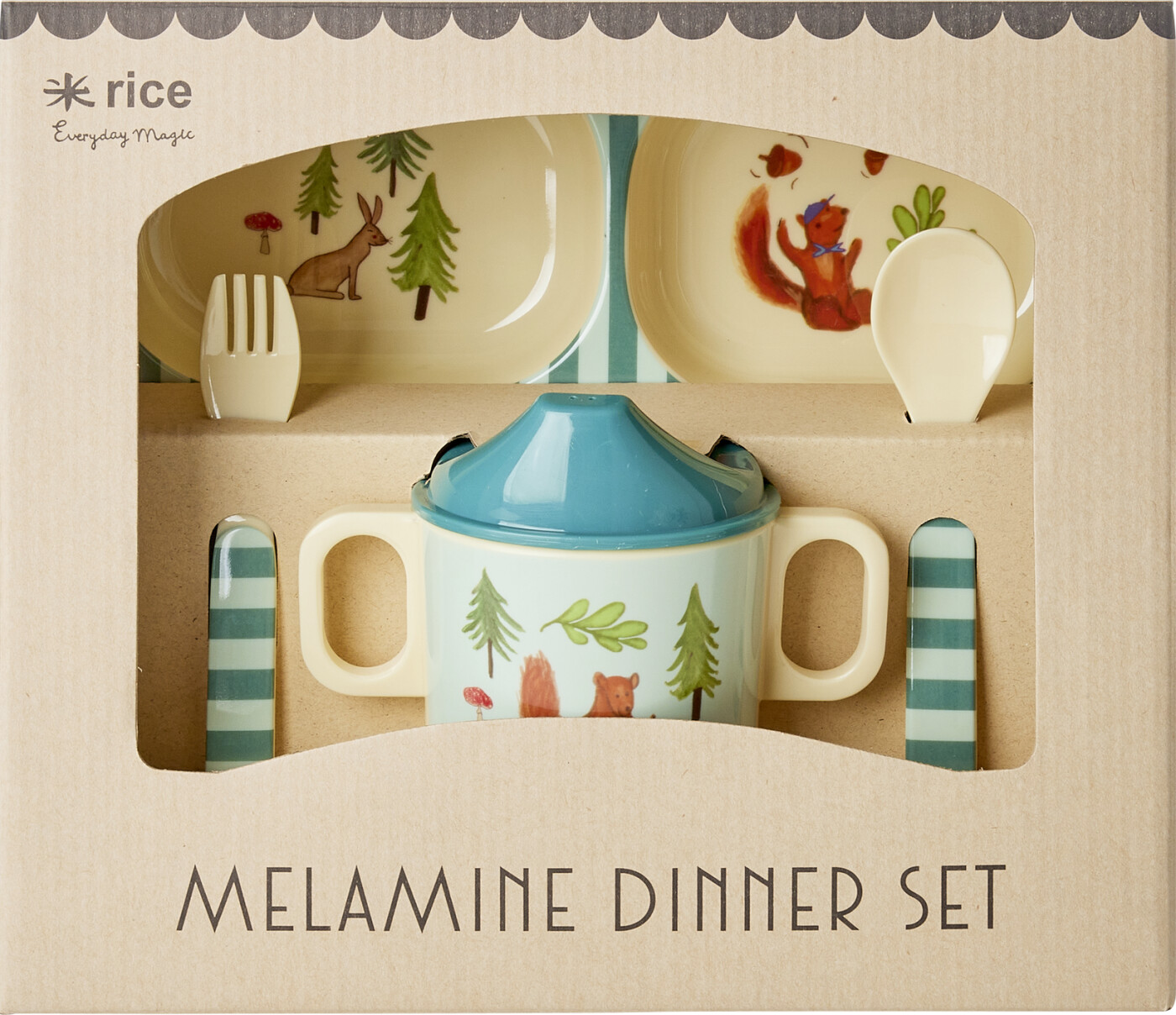 Rice - Melamine Baby Dinner Set - Blue Happy Forest Print - 4 Pcs