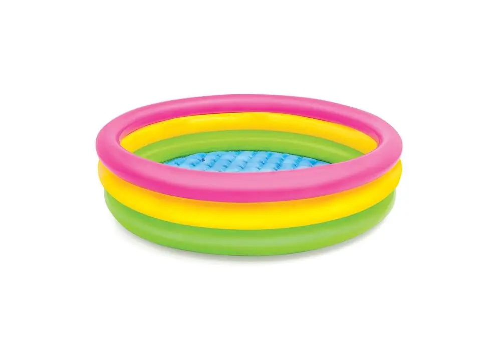 Denne oppustelige pool består af 3 ringe i flotte farver og har en bekvem oppustelig bund. Poolen er nem at sætte op i haven og inviterer til masser af pjaskesjov. Inkluderer: - vandkapacitet 131L - ca. oppustet størrelse 114 x 25 cm - 1 reparationsla