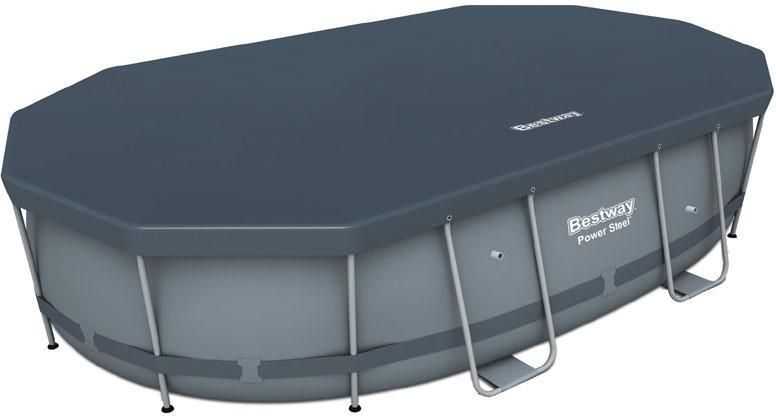 Svømmebassin cover passer til Bestway: Power Steel oval 424 x 250 x 100 cm Pool Cover Diameter; 418 x 230cm Betrækket leveres med reb til at fastgøre det til poolen samt drænhuller der forhindre vand i at akkumulere oven på betrækket.