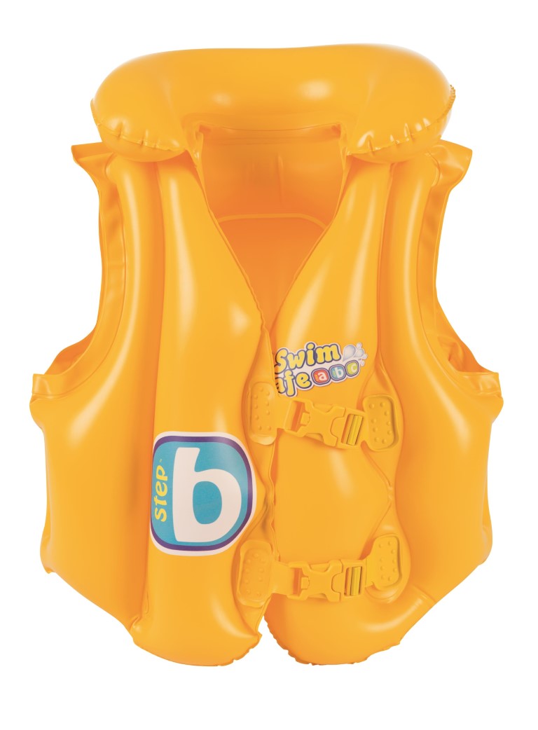 • Sikkerhedsventiler • Forstærket for-testet vinyl • 2 to regulerbare snapspænder • Oppustelig krave • 3 luftkamre Designed to get kids moving and grooving and out of the house, the Swim Safe ABC™ Vest Step B puts the focus