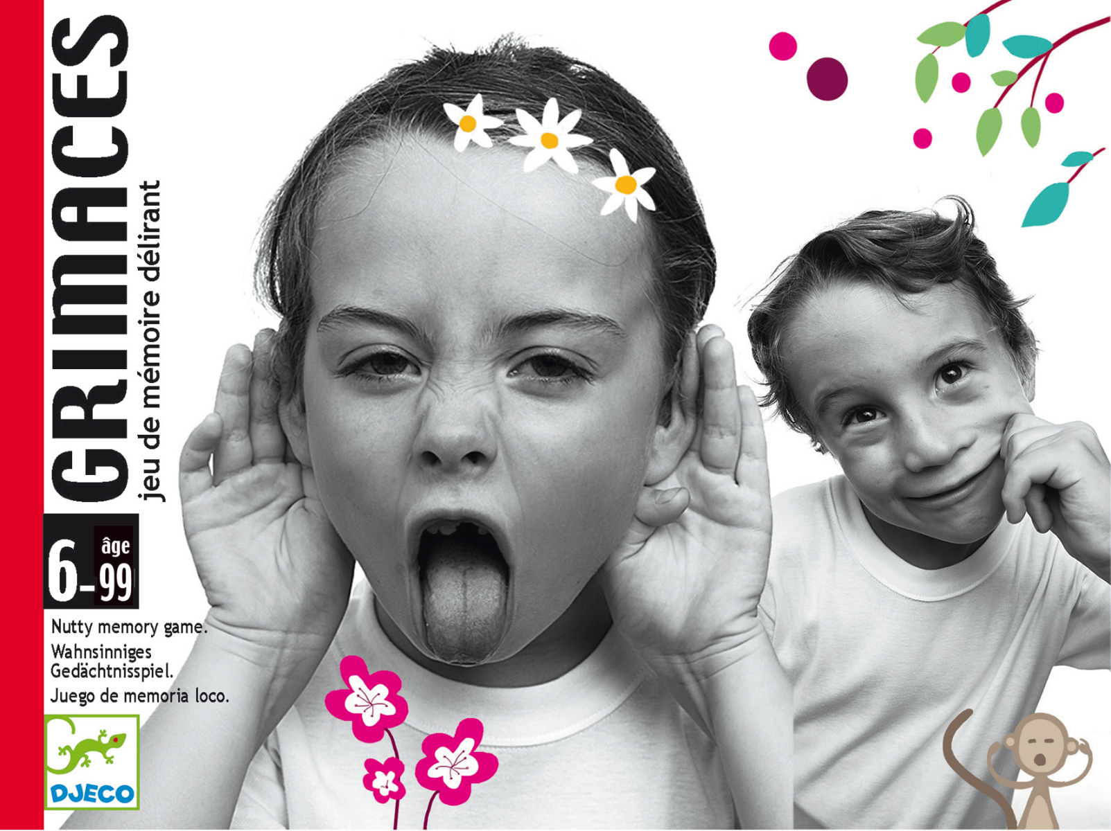Et skørt kortspil, som både er meget underholdende at spille, men som også udvikler dit barns mimik, mundmotorik og hukommelse.I kan spille på flere måder. En udgave er at være to hold med to på hver. Så skal den ene trække fx 6 kort, hvorefter man skal gengive grimassen på de enkelte kort for sin medspiller. Denne skal så prøve at gætte, hvilken grimasse, der er tale om. I kan også prøve at sætte jer i en række efter hinanden, gerne endnu flere end 4, og så skal den første spiller sende grimassen videre til den næste i rækken. Når den sidste i rækken har modtaet grimassen, skal denne spiller så prøve at gætte, hvilken grimasse, der mon var på kortet til at starte med.