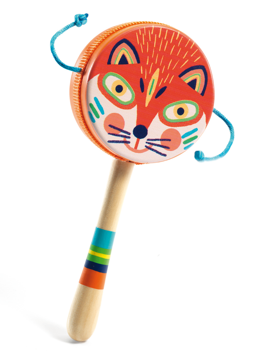 Den frække ræv på denne fine håndtromme må desværre finde sig i at få no'en på bærret, når dit barn bevøger håndtrommen frem og tilbage mellem fingrene. De små snore slår nemlig på trommens skind og giver forbavsende høj lyd fra sig. Oplagt gaveide spektakelmagere. Trommen er så sød og fint bemalet i et skønt design, ligesom de mange andre børneinstrumenter i samme serie fra Djeco.Musikalsk aktivitet er noget af det mest udviklende, dit barn kan foretage sig. Det udfordrer og udvikler mange funktioner i hjernen, der vil gavne dit barns læring generelt, så kast jer bare ud i det.Trommen er også en sjov måde at øve stavelser i ord på, hvis I lader trommen lyde med en smæld for hver stavelse i stedet for et klap.
