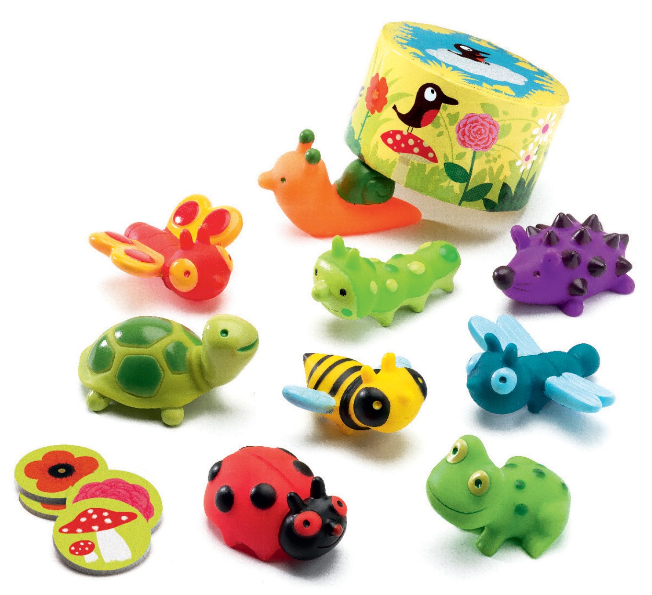 En meget sødt spil for de allermindste i Djeco's serie af småbørnsspil, der lærer børn fra ca 2 år at være med til at spille brætspil og kortspil. Dette spil består af en række af små dyrefigurer og en æske, som et dyr ad gangen kan gemme sig under. En variant af Kims leg med fokus på dyr. 2-4 spillere.