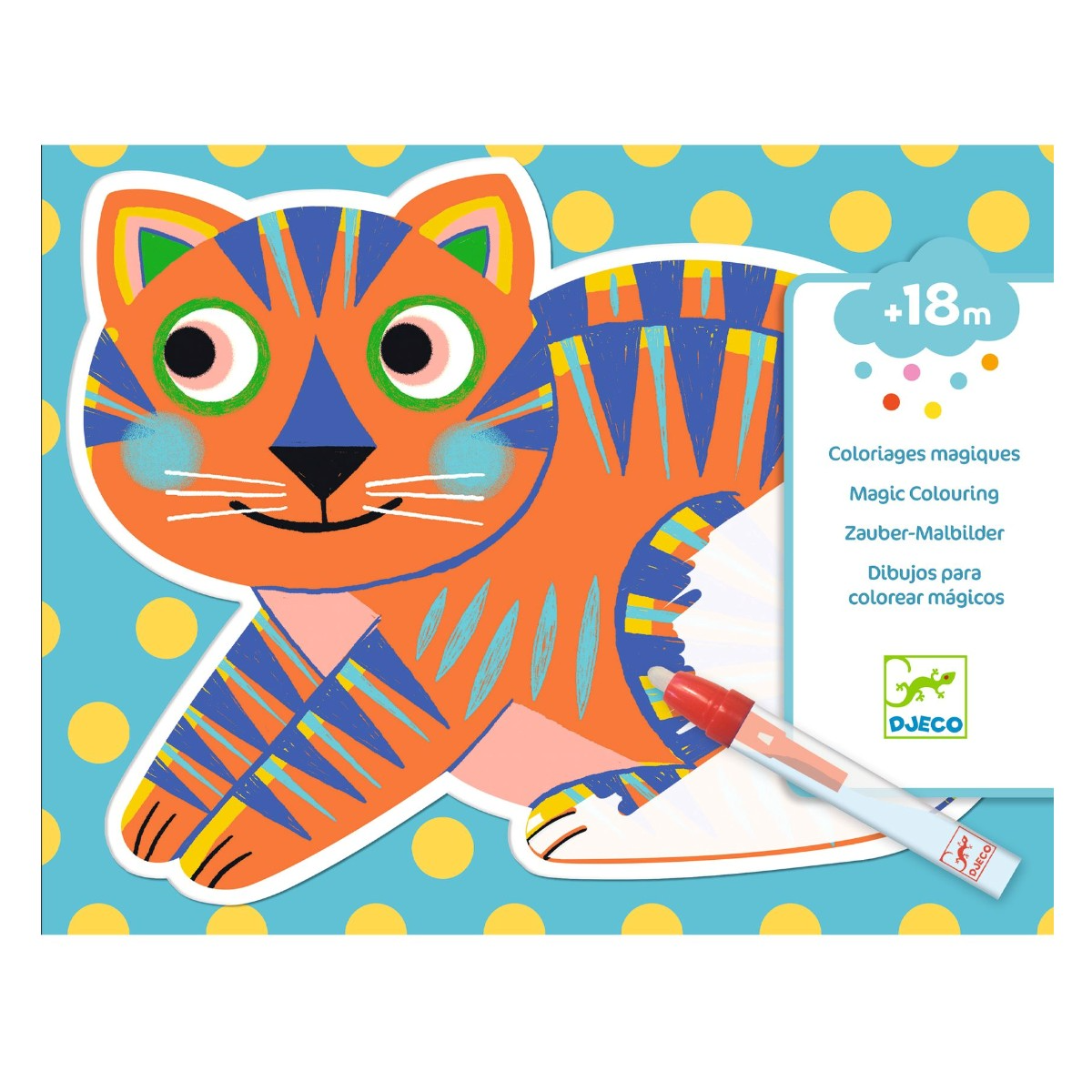 4 søde motiver, der farvelægges ved hjælp af en magisk pen med vand i. Når motiverne fugtes med pennen, kommer de fine farver frem.