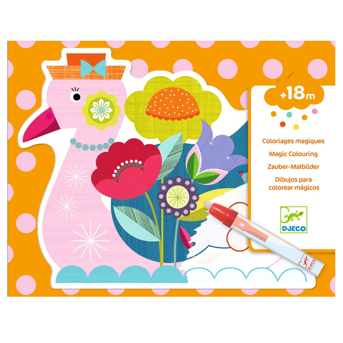 4 søde motiver, der farvelægges ved hjælp af en magisk pen med vand i. Når motiverne fugtes med pennen, kommer de fine farver frem.