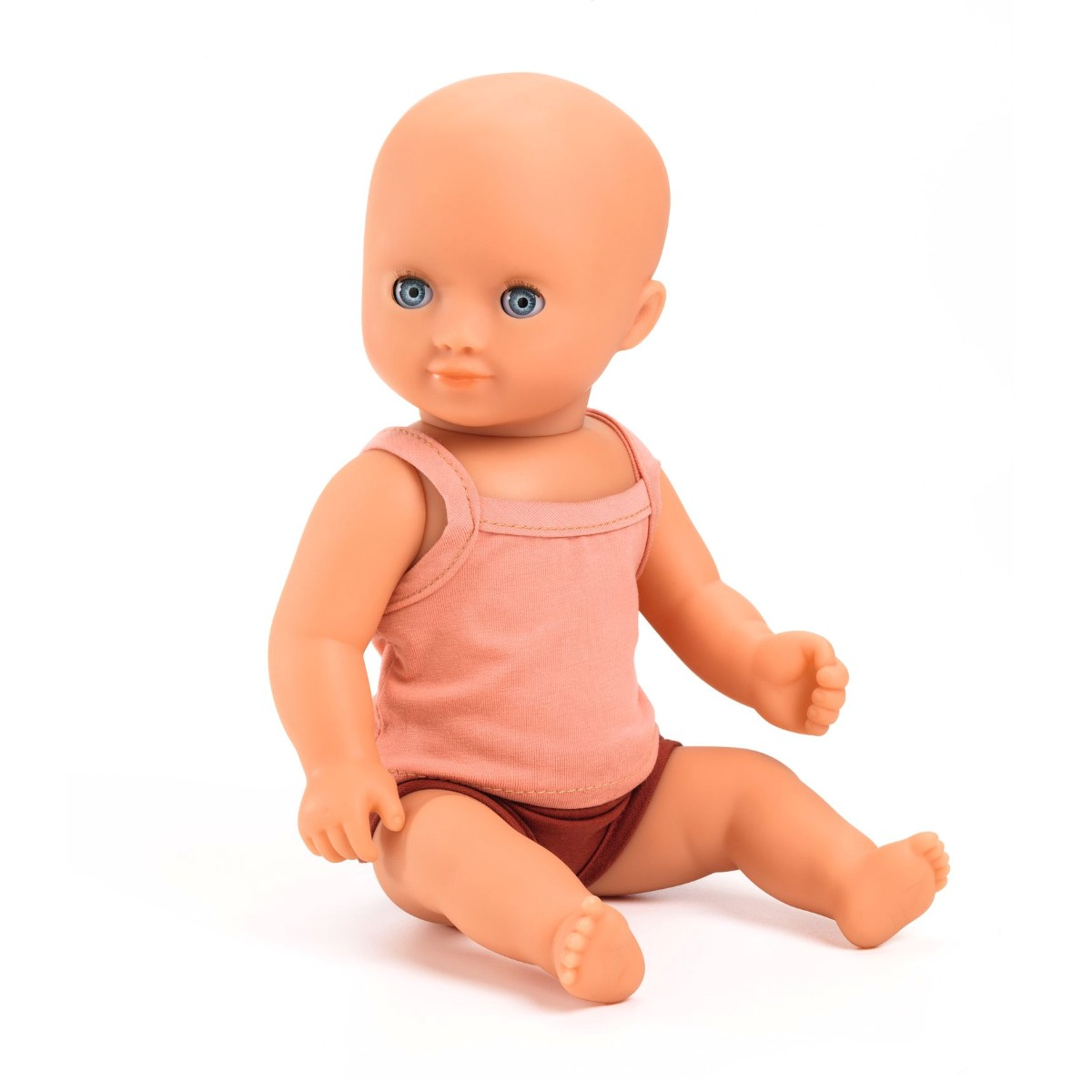 Sød dukke med hård krop, så den kan tåle at komme i bad.Med anatomisk køn.