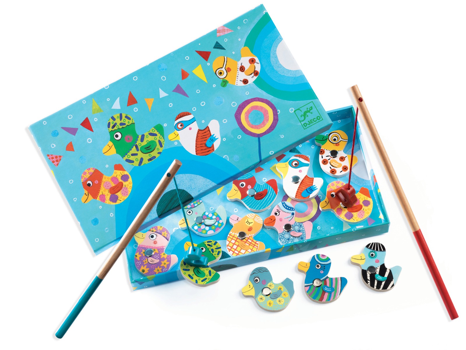 Det klassiske fiskespil i en magnetisk og meget lækker udgave med 12 flotte og festlige ænder og 2 fiskestænger.Hele herligheden er af træ, og farverne er strålende klare - en sand fornøjelse at lege og lære noget om magnetisme med fiskespillet her.