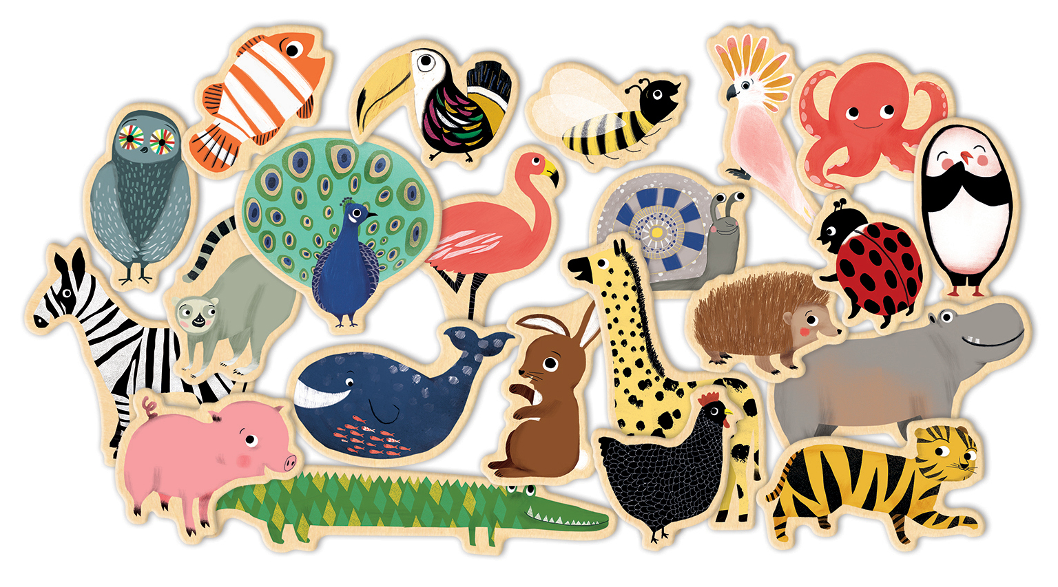 Super dejlige magneter fra Djeco i en skøn kvalitet, fremstillet af træ. Hele bagsiden er magnetisk, og magneterne er tykke, så de er nemme at håndtere selv for små hænder.I den lækre æske er der 36 dyremagneter, lige til at sætte på køleskabet eller magnettavlen.De måler ca 8 cm.Magneter er et skøn mulighed for at snige lidt fantasi ind i hverdagens små åndehuller.