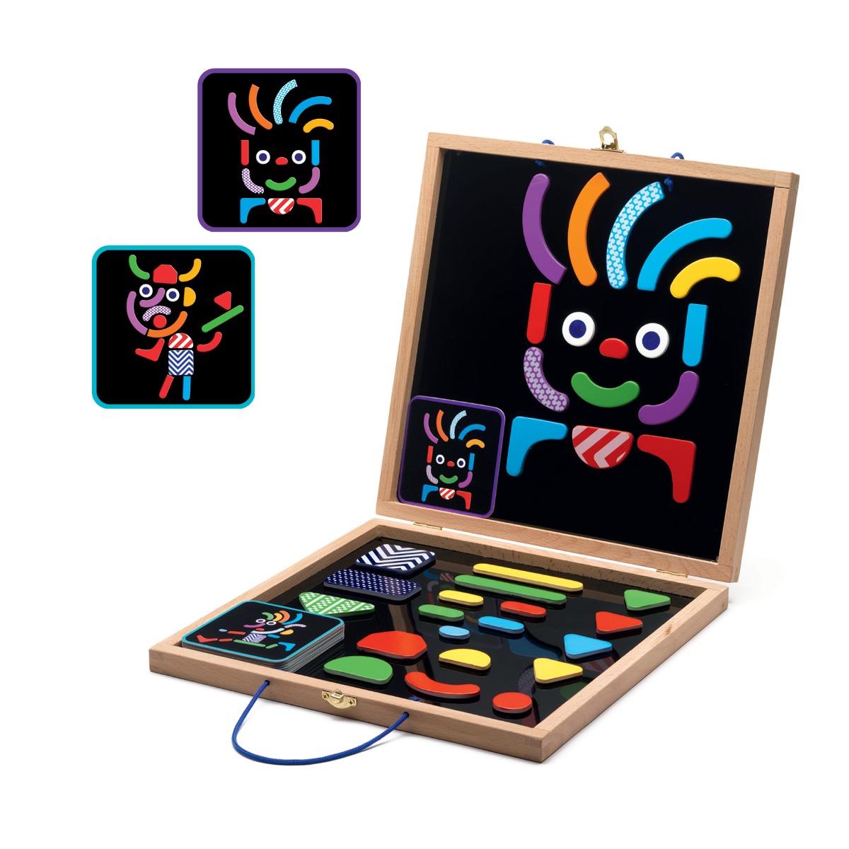 Et skønt legesæt med en masse lækre magneter i forskellige geometriske former, som dit barn kan skabe alle mulige flotte figurer og mønstre med. I kan også bruge de 12 vendbare kort med inspiration til, hvordan I kan bygge med magneterne. Det hele ligger i en flot æske af træ, som er magnetisk, så I både leger og bygger i æsken, og det hele er nemt at rydde op. Magnetlegen med dette fine sæt udvikler dit barns interesse og forståelse for geometri.