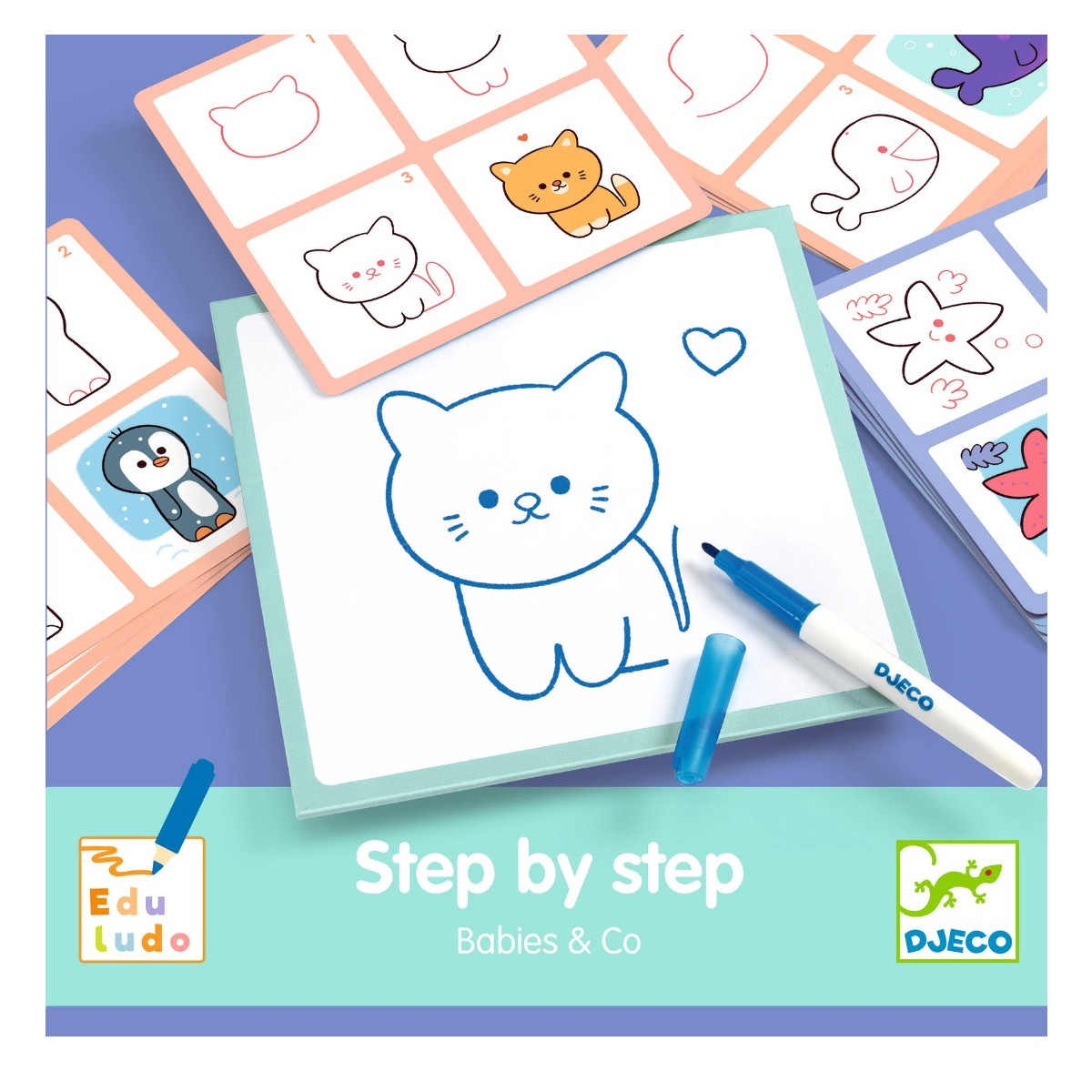 Djeco | Lær at tegne, Trin for trin - Dyrebørn