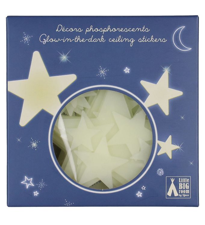 Skab en magisk atmosfære i dit hjem med Djeco Vægdekoration - 65 stk. Selvlysende Stjerner. Disse stjerner er designet til at bringe stjernehimlen ind i dit barns værelse, hvilket skaber en beroligende og fantasifuld stemning, når mørket falder på. Hver stjerne lyser op i mørket og giver en blød, hyggelig belysning, der gør det lettere for små at falde i søvn. Djeco er kendt for sine højkvalitets produkter, og disse selvlysende stjerner er ingen undtagelse. De er lavet af sikre og holdbare materialer, der sikrer, at de forbliver smukke og funktionelle i lang tid. Stjernerne kommer i forskellige størrelser og former, så du kan skabe dit eget unikke design på væggen. Monteringen er enkel; du kan bruge de medfølgende klæbende bagsider til at placere stjernerne, hvor du ønsker. Uanset om du vælger at skabe en stjernehimmel over sengen eller sprede dem rundt i rummet, vil Djeco Vægdekoration - Selvlysende Stjerner tilføje en sjov og magisk dimension til ethvert værelse. Giv dit barns værelse et personligt præg med disse fantastiske stjerner fra Djeco!
