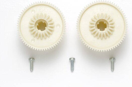 TA02 High Speed Gear Set Use this set with the TA02 chassis for a faster setup than with the kit standard 74T component. Set Contents/Information • 66T Spur Gear x1 • 69T Spur Gear x1 • 3x10mm...