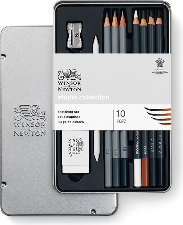Skitsesæt Med Blyanter Og Tilbehør - Studio Collection - Winsor & Newton - 10 Dele