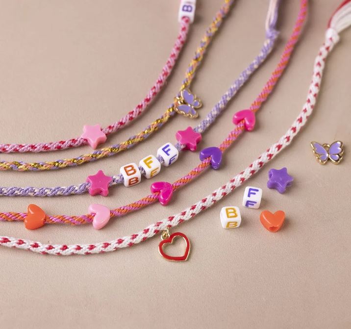 De bliver så fine, disse knyttede smykker. Lær knytteteknikken Kumihimo ved hjælp af knytteskiven og flyv derudaf på kreative vinger. Lad dit barn glæde venner og familie eller bare sig selv med fine, nye smykker.Følg QR-koden på emballagen, så kommer I til et helt bibliotek med inspirerende videoer og vejledninger.