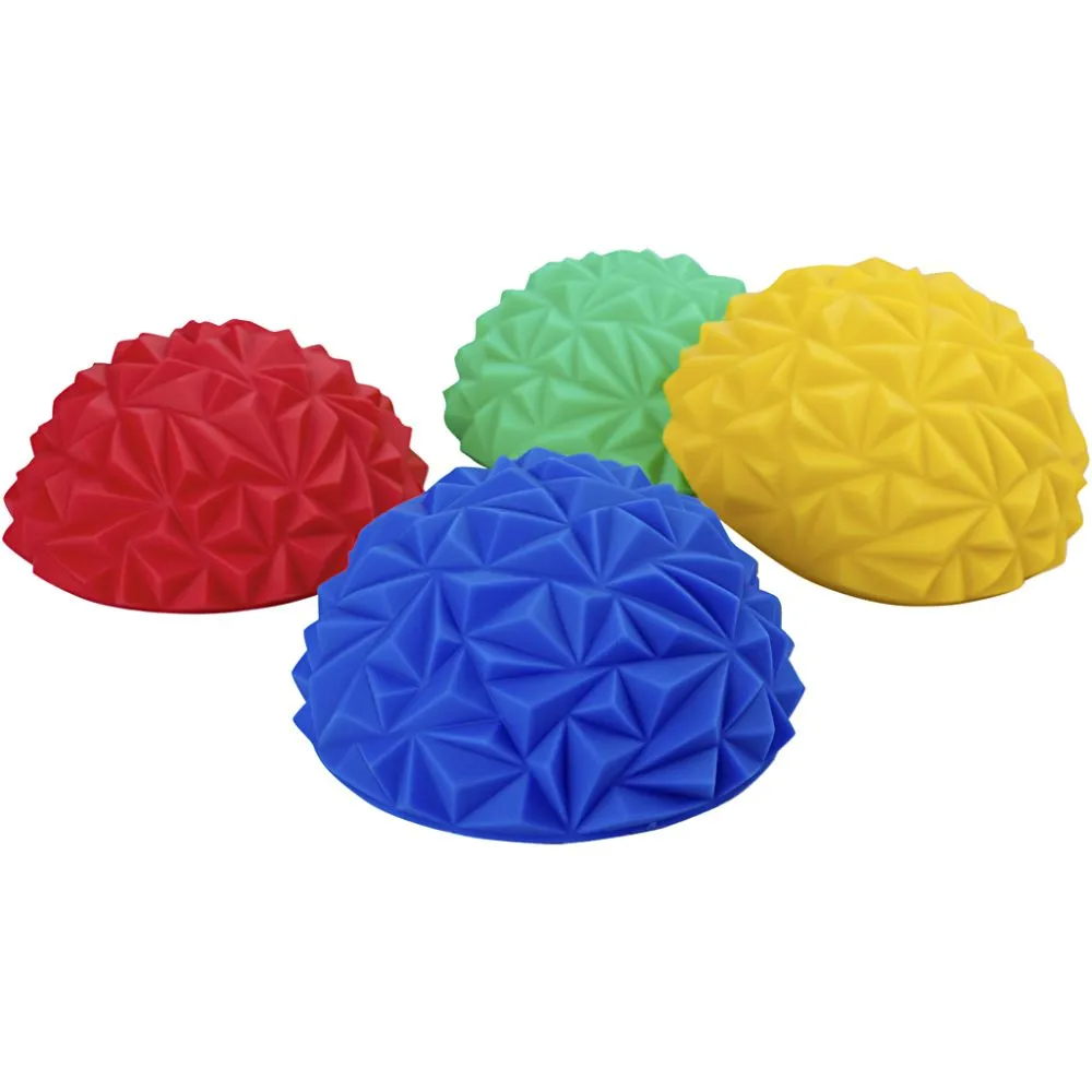 Halvkuglerne pumpes op med en pumpe til bolde, og så kan du selv justere, hvor hårde og dermed svære at stå på, de skal være. De er en sjov del af en forhindringsbane, og det kan også sagtens være en del af et matematikforløb at skulle balancere på balancekugler.Mon ikke du er kreativ nok til at udtænke en måde, hvorpå tal og balance kan kombineres, så kroppen og hjernen skal samarbejde?Kuglerne er fremstillet af PVC.Pumpe medfølger ikke.