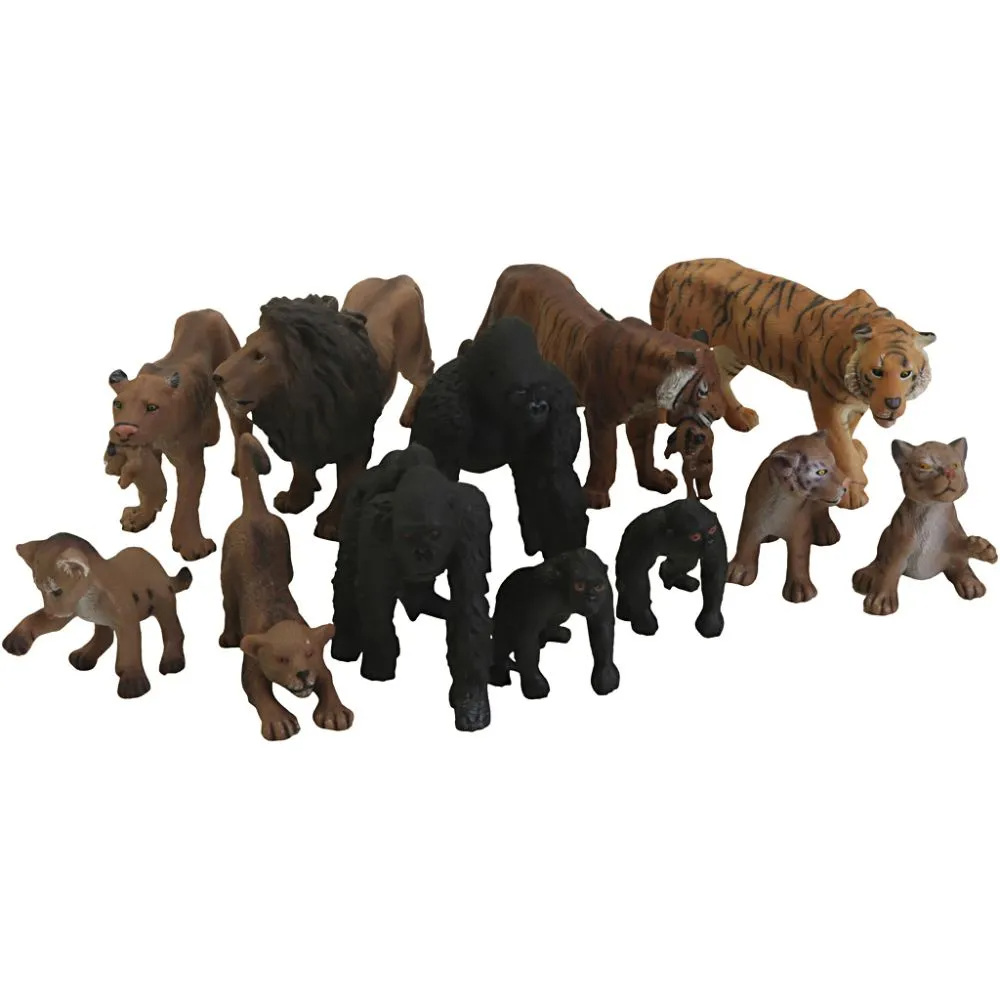 Søde forældrepar med dejlige unger. Dyrefigurerne er fremstillet af solidt, massivt og slidstærkt plast. Her er gorillaer, løver og tigre.