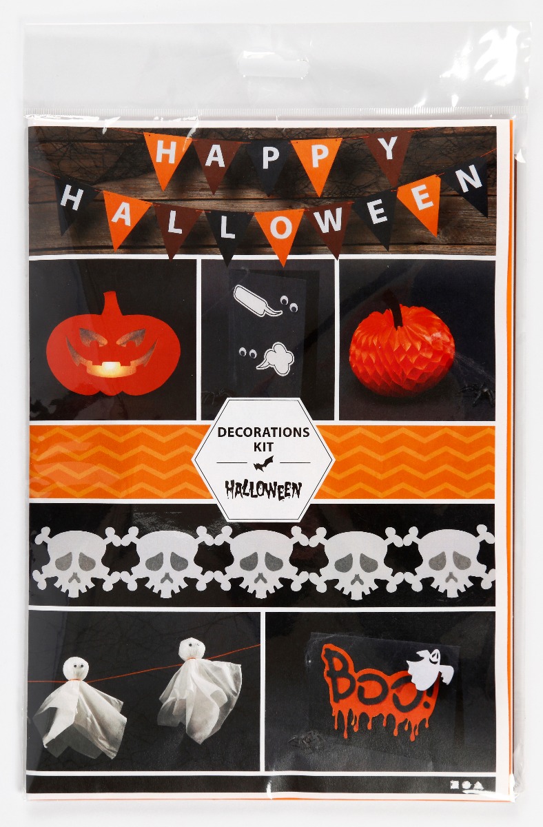 Så skal der produceres pynt til halloween. I dette sæt er der rigeligt til, at flere kan være med. Og så er det jo altid hyggeligere at være sammen om at lave pynt, pynte op og gøre klar til selve dagen (31. oktober).Materialesæt med karton, harmonikapapir, silkepapir, rulleøjne, snor og skabeloner til halloween dekorationer. Indhold: 4 ark silkepapir (50x70 cm), 9 ass. ark A4 karton, 1 ark harmonikapapir (28 x 17,8 cm), 40 ass. rulleøjne, 1 m snor og mønsterark.