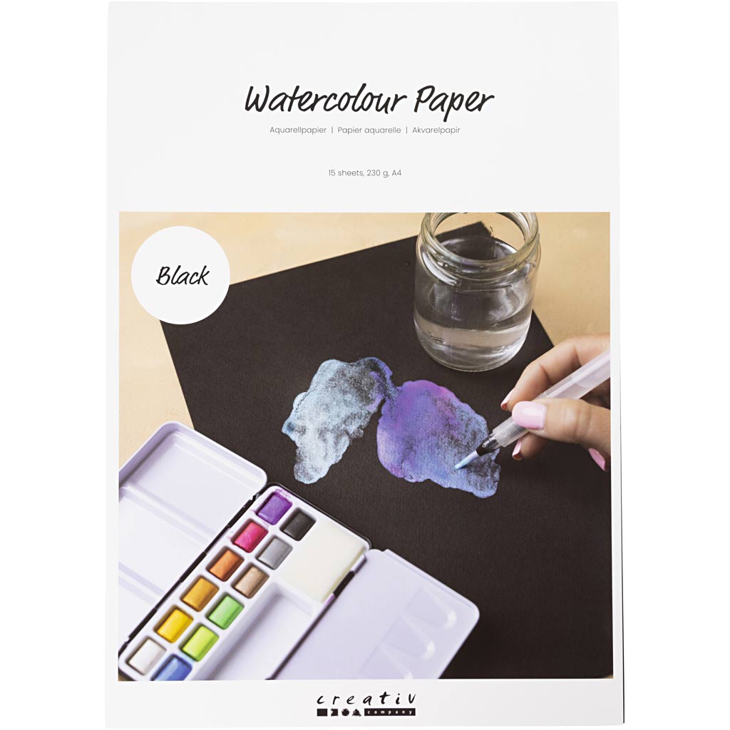 Creativ Company - Akvarelpapir A4 / 230 gr. - Sort, 15 ark. Er velegnet til Kreativitet,Tilbehør og passer til aldersgrupperne: 3 år,4 år,5 år,6 år,7 år,8 år,9 år,10 år,11 år,Senior