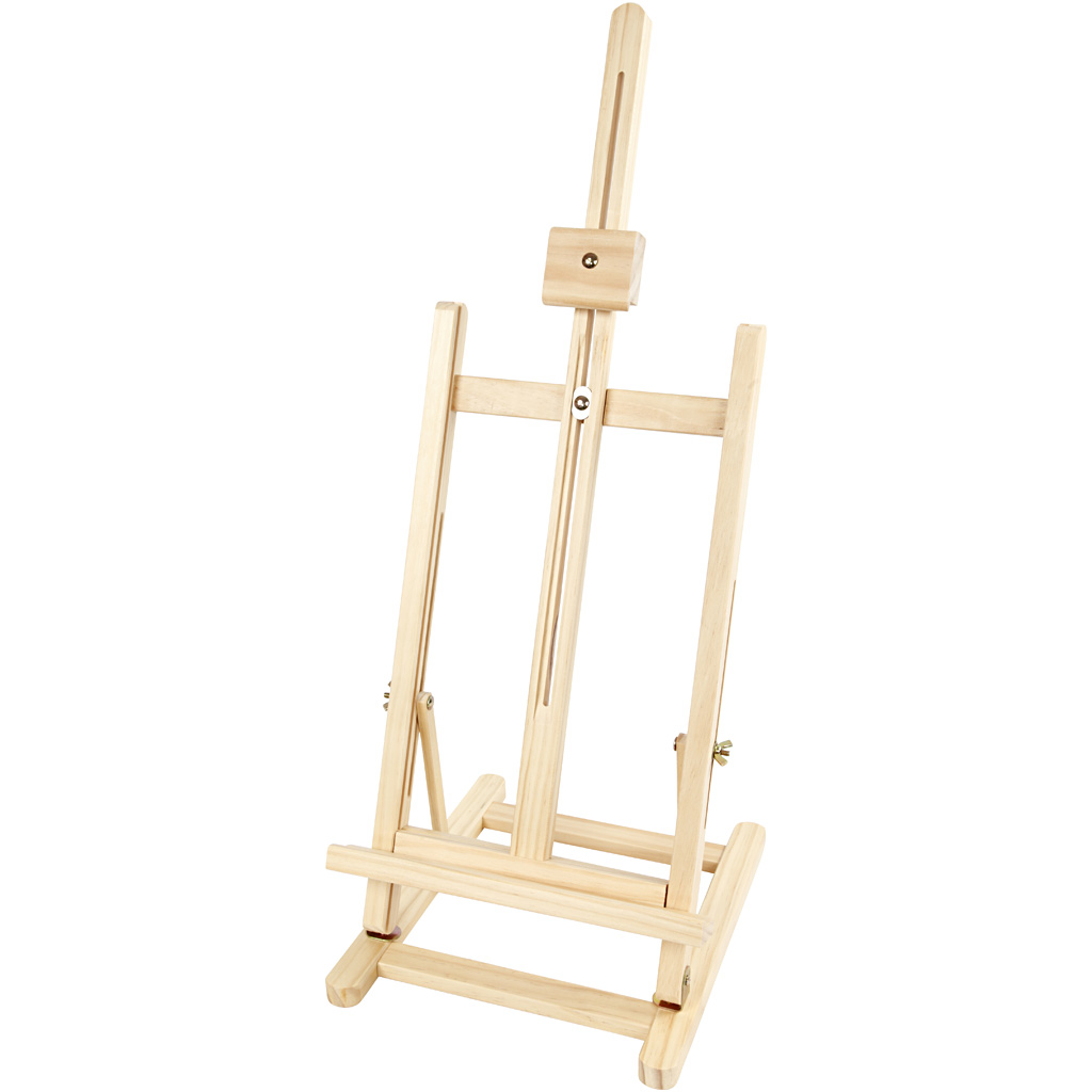 Bordstaffelier er som navnet hentyder, små staffelier som egner sig til arbejdet ved et bord. Bordstaffelier kan tage små lærreder, og de er også praktiske at have med på farten.De kan også bruges til papirblokke med en fast ryg eller med en tegneplade bagved. Det er lige til at klappe sammen og tage med eller gemme væk efter brug. De er derfor ideelle til det lille atelier eller til børnenes kreahjørne.Gedigent bordstaffeli i træ med justerbar lærredsvinkel. Let at folde sammen, transportere og opbevare.Max lærredshøjde 56 cm.