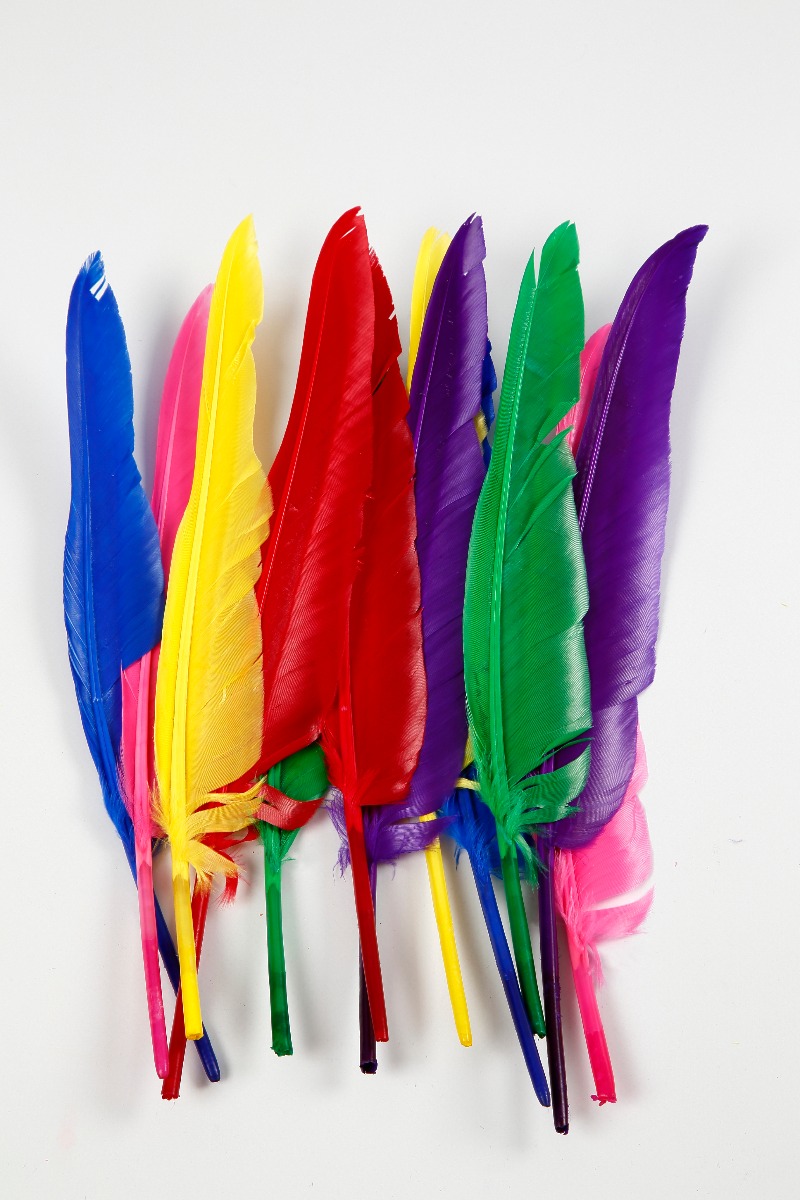 Skal du lave en flot og overdådig fjerpragt?For nogle oprindelige folkeslag i Amerika kan eller kunne fjer være ladet med symbolik, og særlige kendetegn viste, hvorfor fjerens ejermand havde gjort sig fortjent til at modtage sin æresbevisning.Fjer havde stor symbolsk betydning for de oprindelige amerikanske præriefolk og blev båret som et tegn på anerkendelse ligesom medaljer. Fjer blev givet til krigere, som havde udvist stort mod i kamp eller ydet en ekstraordinær indsats for sin stamme.De fleste oprindelige amerikanere modtog blot nogle få fjer i løbet af deres liv, men de mest betydningsfulde krigere fik så mange, at de kunne sætte deres hædersbevisninger sammen til en stor fjerprydelse, som blev båret i krig eller ved religiøse ceremonier.I pakken er der 12 fjer, som er 27 cm lange. 6 forskellige farver.
