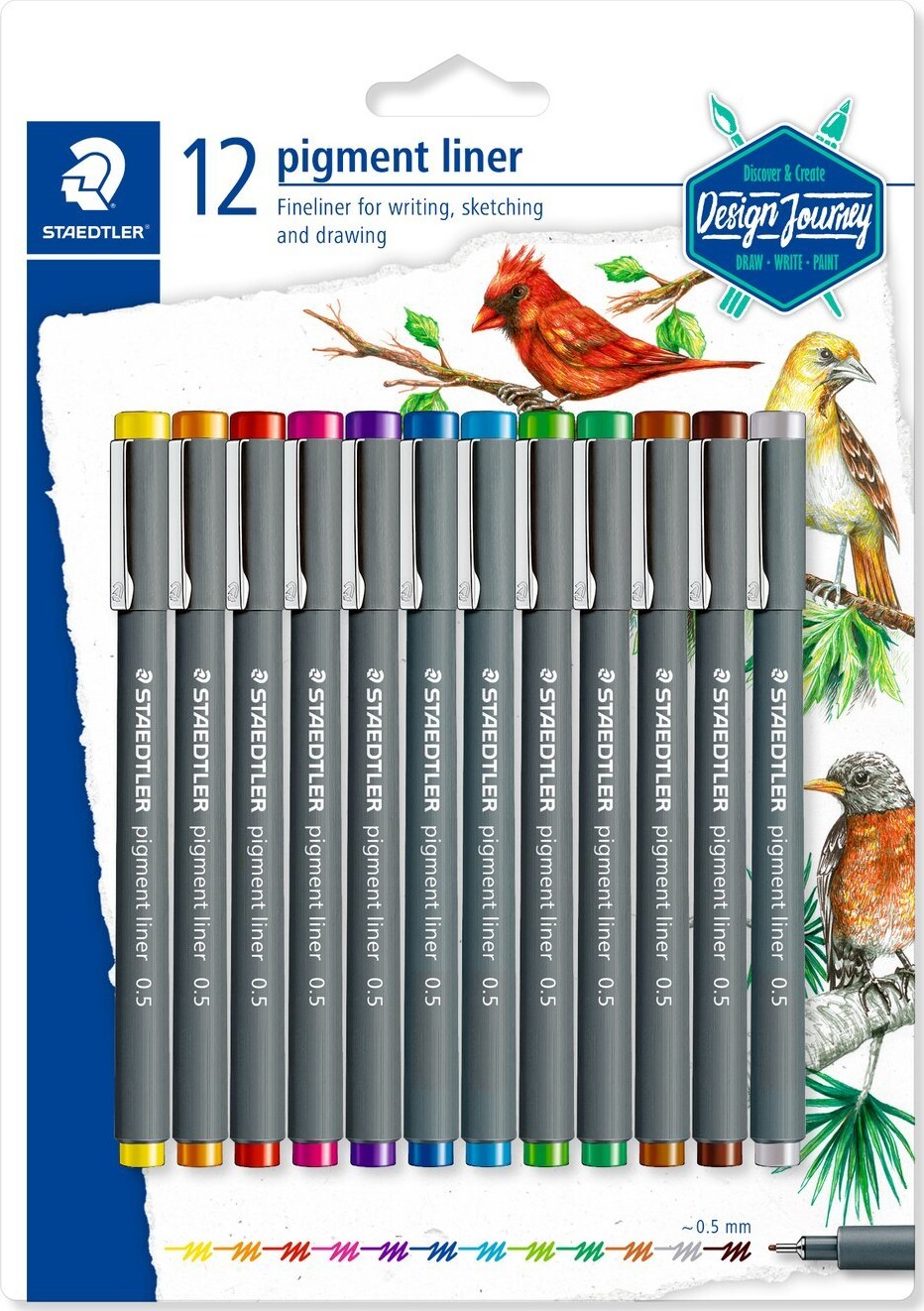 Staedtler - Pigment Liner - 0,5 Mm - Sæt Med 12 Farver