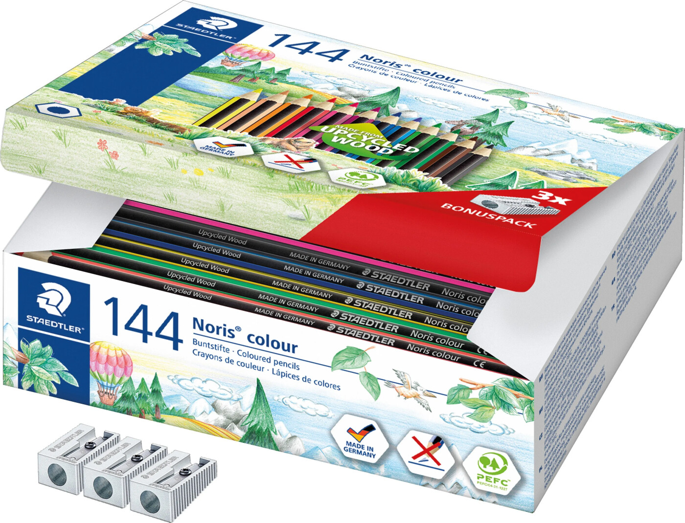 Staedtler Noris - 144 Farveblyanter Og 3 Blyantspidsere - 12 Farver