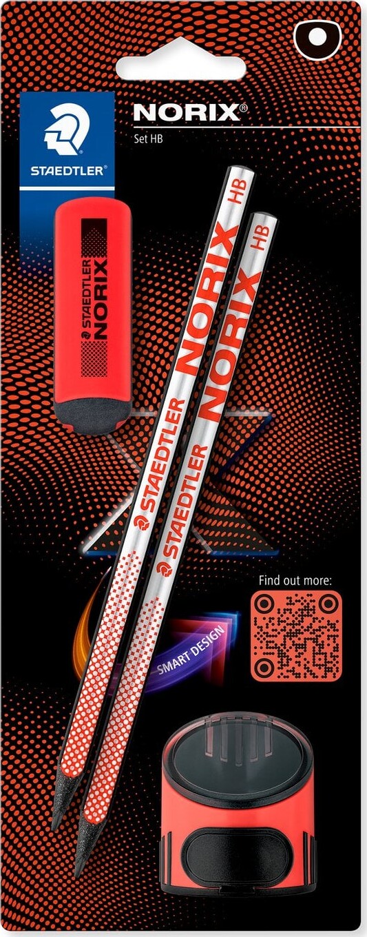 Staedtler - Norix Blyantsæt, 2 Blyanter, Viskelæder Og Blyantspidser - Rød