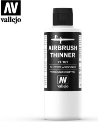 Airbrush Thinner fra hobbymærket Vallejo bruges til at forlænge farverne, øge deres flydende egenskaber og samtidig forsinke tørretiden. Dog ændrer Airbrush thinneren ikke farvernes egenskaber....