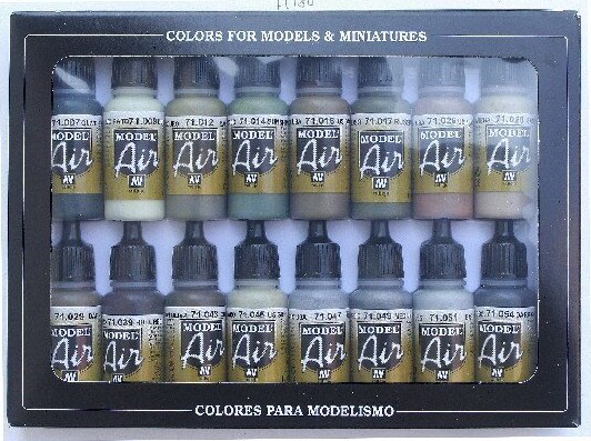 Dette Model Air WWII Allied malingsæt indeholder 16 Model Air-referencer til maling af modeller, figurer og dioramaer. Sættet består af 16 flasker med 17 ml (med pipette) og et farvekort. Model Air...