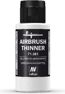 Airbrush Thinner fra hobbymærket Vallejo bruges til at forlænge farverne, øge deres flydende egenskaber og samtidig forsinke tørretiden. Dog ændrer Airbrush thinneren ikke farvernes egenskaber....