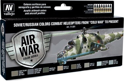 Soviet/Russian Colors Combat Helicopters malingsæt med Model Air farver udviklet til at male forskellige modeller af helikoptere fra det sovjetiske luftvåben og den nuværende russiske føderation...