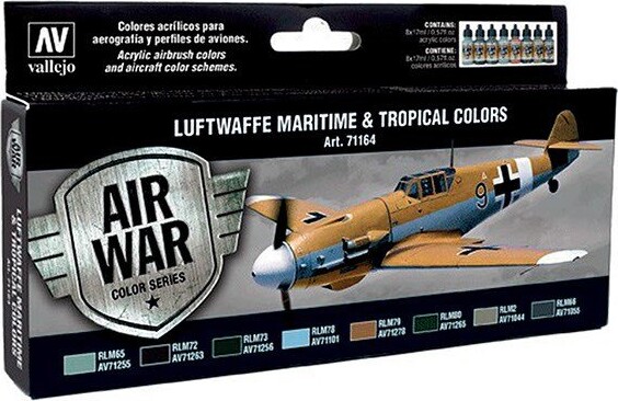 Sæt af Model Air farver udviklet til maling af Luftwaffes camouflagemønstre udviklet til fly til søs, samt til de farver, der anvendes til alle typer fly, der opererede i det nordafrikanske felttog...