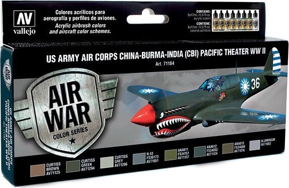 Sæt Model Air-farver udviklet til at male skemaerne for de fleste US ARMY AIR CORPS-fly, der blev brugt i operationsteatret Kina/Burma/Indien (CBI), såvel som i Stillehavskampagnen under Anden...