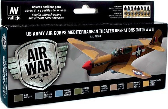 Sæt med Model Air-farver udviklet til at male camouflageskemaerne for de fleste US ARMY AIR CORPS-fly, der blev brugt i Mediterranean Theatre of Operations (MTO) under Anden Verdenskrig. Indhold: 8 x...
