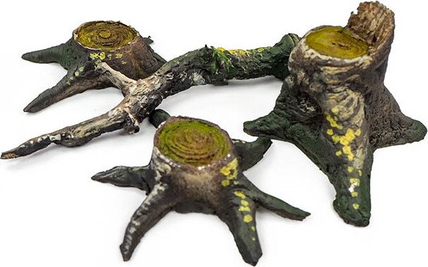 Stumps With Roots - SC305 Fire tørre ahornstubbe og en nedfalden gren, med detaljeret barkstruktur og indvendig side. Ideel til at placere på europæiske stemningsdioramaer, hvor du kan vælge toner...