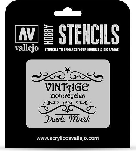 Vallejo - Hobby Stencils - Maleskabelon - Vintage Motorcycles Skilt