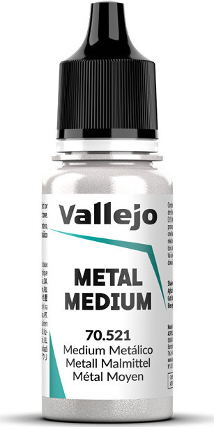 Metal Medium fra modelhobbymærket Vallejo er et akrylmedium formuleret med glimmer, som kan blandes med akrylfarver for at skabe en iriserende glans eller påføres alene for en sølvfarvet...
