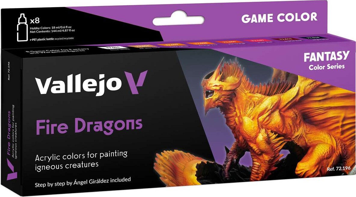 Vallejo - Game Color Maling Sæt - Fire Dragons - Fantasy - 8x18 Ml