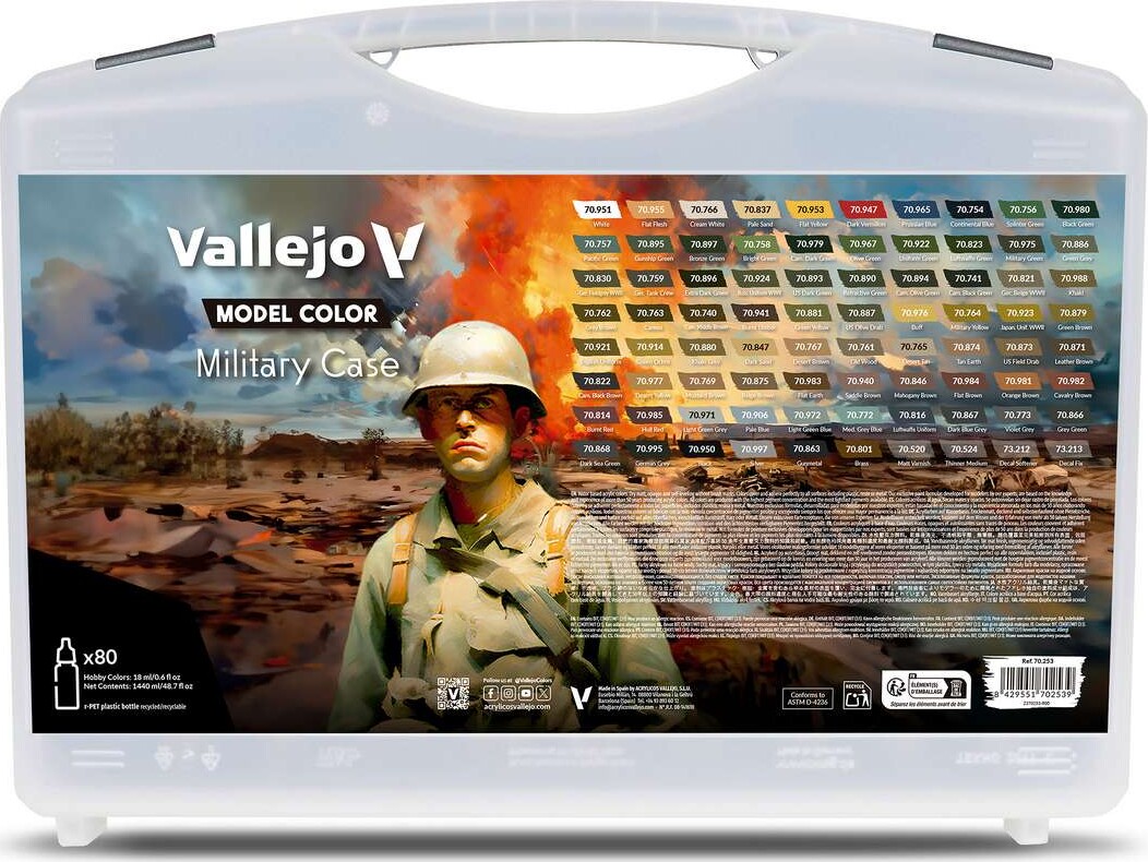 Vallejo - Model Color Military Case - 76 Stk Maling + 4 Midler - 70253