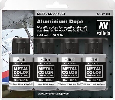 Vallejo - Airbrush Maling - Aluminium Dope - Metal Color Set - 4x32 Ml