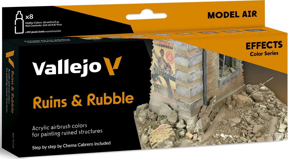 Vallejo - Effects Maling Sæt - Ruins & Rubble - 8x17 Ml
