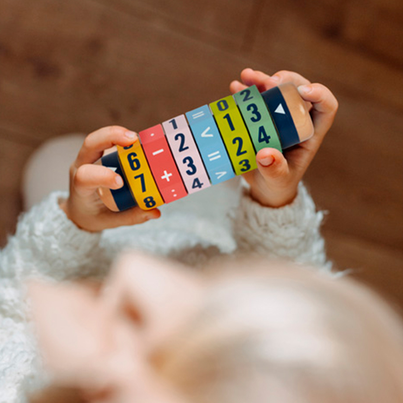 Regnerulle med 6 roterende skiver, som lader jer finde på regnestykker med svar fra 1-99. Eller brug større end-tegnet, hvis 99 er for lidt. Med tegn til at addere, subtrahere, gange og dividere.