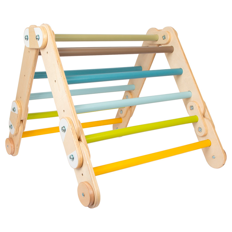 Alsidig, stabil og robust klatretrekant, som kan indstilles på flere måder, så den det ene øjeblik er en trekant og tunnel og derefter kan forvandles til fx et hus til bamserne, eller to mindre trekanter i forlængelse af hinanden og tilpasses dit barns alder og evner.Kan klappes sammen, så den ikke fylder alt for meget, for den ikke er i brug.Kan sættes sammen fx small foot klatrerampen eller klatrevippen.Kan bruges indendørs men tag den ind efter brug. Det forlænger holdbarheden.Vægtgrænse: 50 kg.